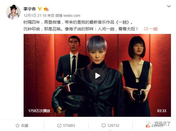 这条微博一出,网上炸了!李宇春迅速登上热搜榜单一位。