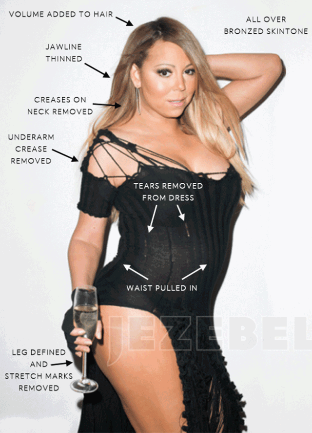 细心的粉丝们还找出了牛姐杂志拍摄的原图,标上了精修的各种部分,真的要把修图师难为死。