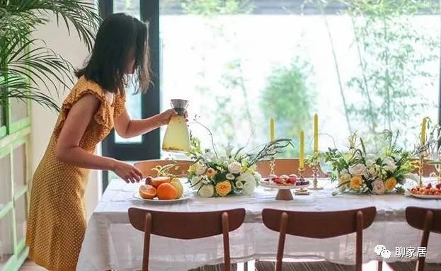 餐厅落地窗我们可以看到室外大面积的竹林,也是显得非常悠然自得。室内餐桌特意搭配了一张白色的桌布,很应景,同时也让整个屋子变得精致了许多,自然气息扑面而来。桌上放满了精美的插花,摆满了烛台,一看就很有仪式感,特别惬意。