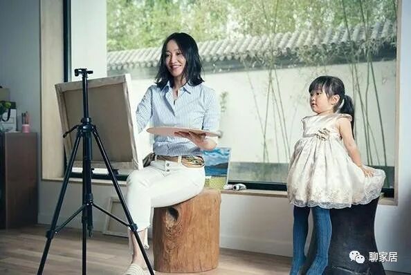 一楼休息室被赵子琪当成了画室来使用,空间超大而且光线好,整个屋子很有艺术气息呢!在这里画画体现的非常宁静,而且还不受影响,太有气氛了,透过窗户我们能看到她家是一个传统的中式庭院,在装修上甚至还用上了瓦片青砖。