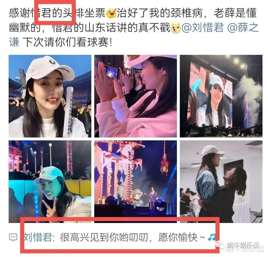 在节目中,我们也看不出来刘惜君和赵丽娜两个人有什么互动。但实际上,两个人私下的互动不少。赵丽娜去薛之谦的演唱会探班刘惜君,赵丽娜的头排坐票还是刘惜君给她的。赵丽娜本人还在社交平台上说,她和刘惜君对视的那一眼差点要尖叫。