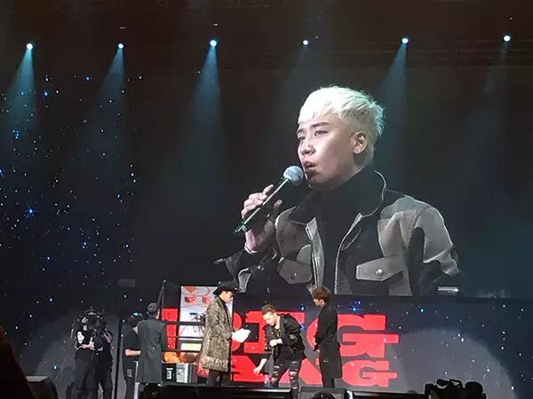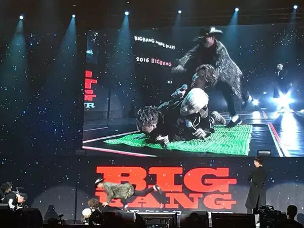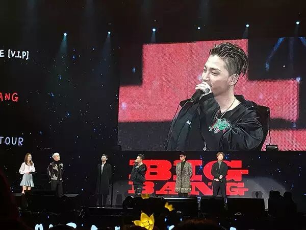 随着强劲的音乐响起,在中国主持人的介绍下,Bigbang五人衣着帅气的亮相舞台。