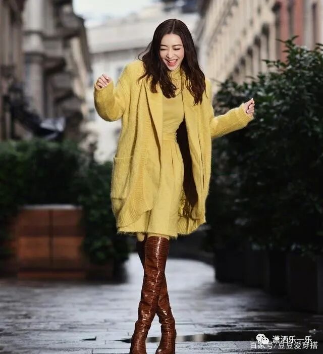 鹅黄是一种非常柔和的颜色,也适用于熊黛林。熊黛林穿着鹅黄色的西服,这使她格外温柔优雅,而且她也非常白。宽松的针织外套很薄,效果非常好。纤细的顶部显示出她完美的身材,下半身与一双相同颜色的高腰短裤立即提升了她的腰围,使身材比例更加完美。