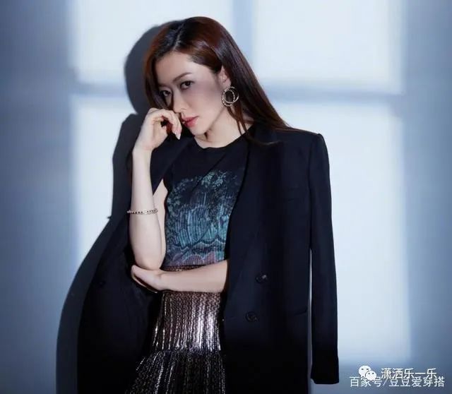 西装外套不仅严肃而有能力,而且彰显了光环。熊黛林的黑色西装外套使她看起来聪明又富有精神。肩垫的设计彰显了她的霸气风格,并偶尔增强了她的光环。里面的亮片连衣裙也很抢眼。裙子的印花设计抵消了西装外套的韧性,使她更加柔软。修身的裙子勾勒出她凹凸不平的身材,充满女人味。