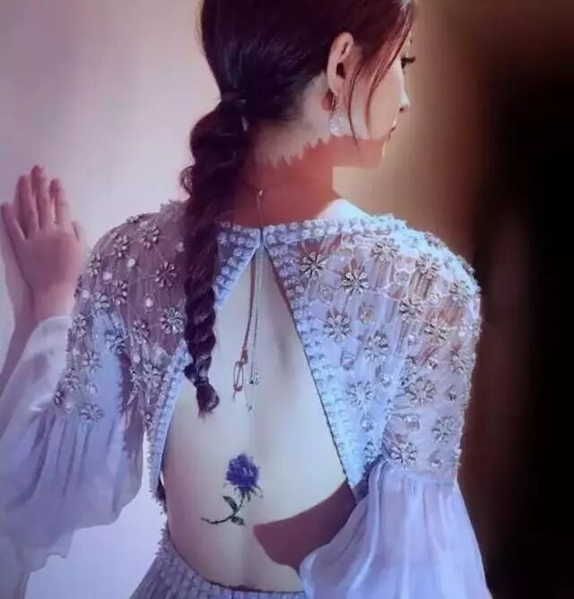 赵丽颖在出席活动、穿着露背装的时候,会用一朵小花将伤痛遮上,出示给外人的,却是优雅自信的形象。