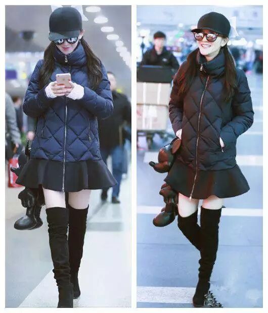 看来机场真的成了谢娜走秀的舞台了,看看这组机场造型照,网友称赞谢娜衣品迈了一个大台阶。羽绒服配过膝长靴,头戴可爱黑色帽子,衣着很显身材比例,绣着大美腿。