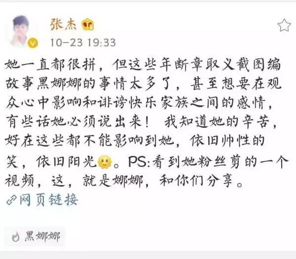 不管别人怎么看待自己的妻子,张杰总是第一个站出来力挺谢娜的,也正是这一举动,让粉丝们最感动的,可以看得出张杰很爱娜娜,他说娜娜一直很拼,希望大家不要再断章取义,再黑她了,这样真的不好?
