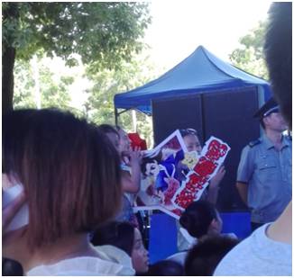空姐和小朋友高举萌萌的Q版展昭,燃起了现场的气氛。有木有被萌到!