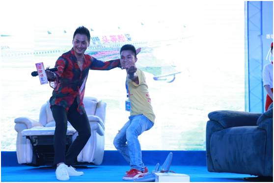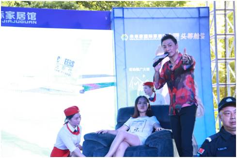 未来家国际家居馆竟还请来空姐助场,并由她们为现场观众体验头等舱沙发的五大功能。