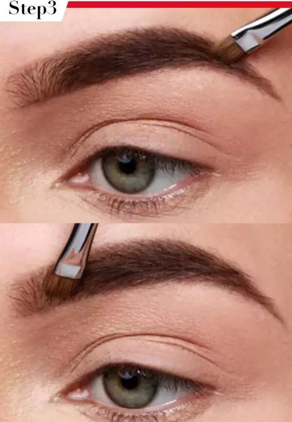 接着用眉粉填色,注意从眉头到眉尾由浅到深,这样会比较自然。