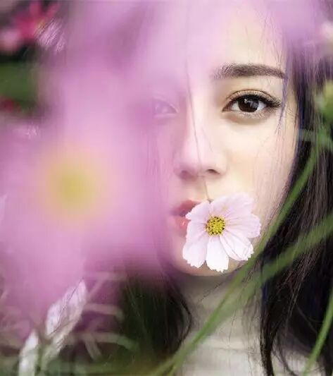 虚实结合,郭碧婷的花花照含蓄婉约。
