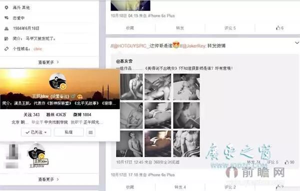 网友怀疑某W男星是王凯后,翻开王凯的微博关注,发现王凯与一个同志微博是相互关注的情况。有网友怀疑是王凯的高仿号,迅速点开果然是王凯本人。但如今王凯已经取关这个微博,同时这个微博也迅速销号。