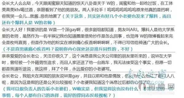 据一些网友还包括W男星的老师爆料,他们看到W男星与男朋友在北京工体美高美KTV里手拉手;W男星在大学时期被一位老外追求,还送了一辆跑车;最狗血的是,某位网友还与W男星是情敌。面对网友的爆料,“关八”会长也肯定了W男星的确是gay.然而这位当红的W男星,网友们怀疑是正蹿红的王凯!