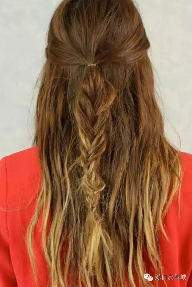 美丽的波希米亚风,松散的波浪的感觉,扎个小辫子,然后绕几个圈就OK了。