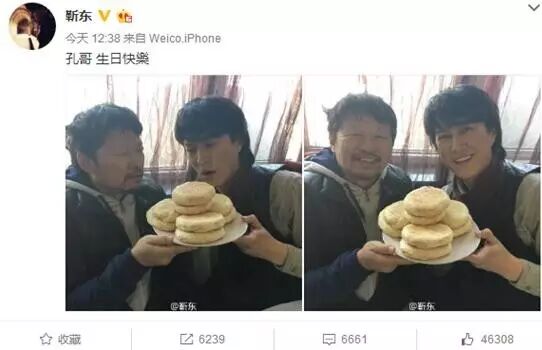 再翻翻东哥的微薄~阿喵发现貌似wuli东哥对于这个造型并不排斥~好像还很享受啊~看看这长刘海、满脸灰再配上这一盘子饼~简直毫无违和感啊~姆们东哥笑的还挺灿烂~看来对于这个造型~他是打心眼里接受了啊~而且这造型和孔笙导演还挺配~东哥啊~你是想在这部戏里和“红犼”或者孔导组个新CP吗~