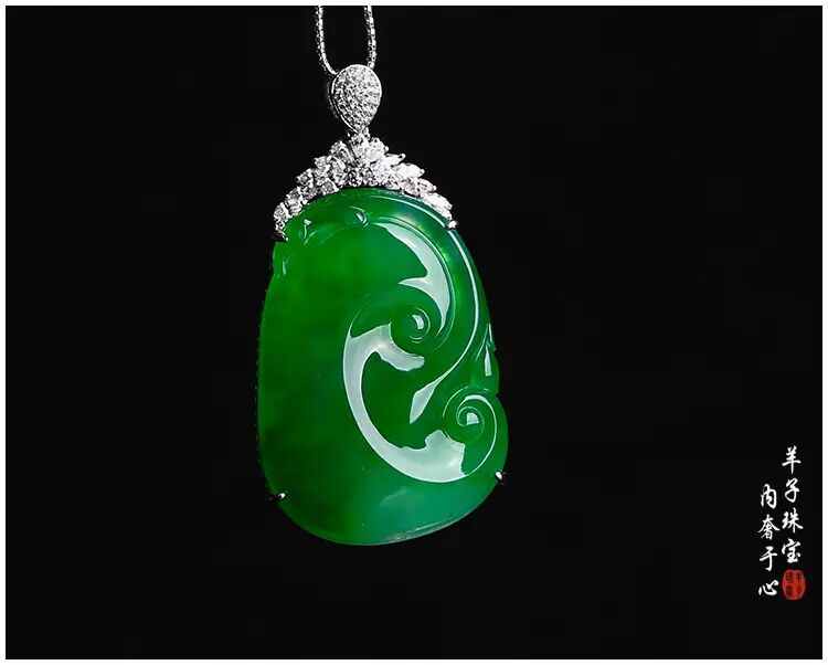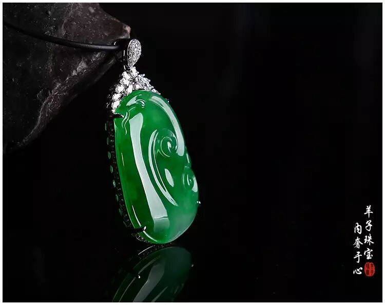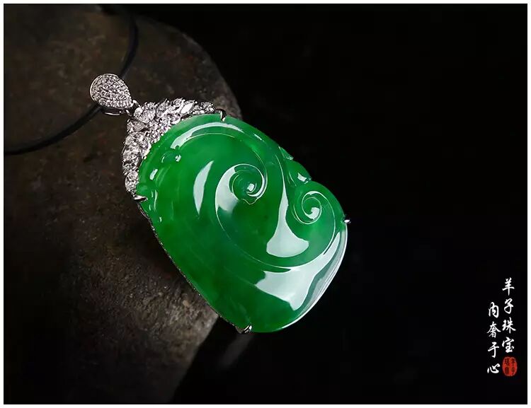 大气磅礴的翡翠辣绿如意,老坑冰玻种帝王绿,种水色交融,美的让人沉醉