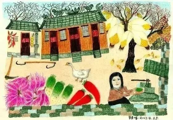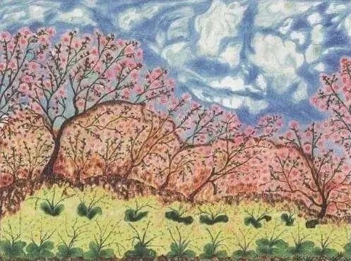 常奶奶拿起画笔是源自67岁那年第一次出远门,从河南老家去广州的儿子家。此后她就拿起了孙女的蜡笔,开始画家乡的山楂树。