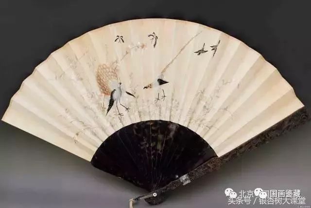 扇面书画一般以精到工整为上。因扇子小又执于手中,宜于近观,一般来说,花鸟常胜于简单的花卉,较复杂山水加人物胜于疏略山水,设色多胜于水墨,金笺胜于纸本等。“物以稀为贵”,在以题材来鉴别时,还要看存世量,存世量少的作品升值前景更为广阔。