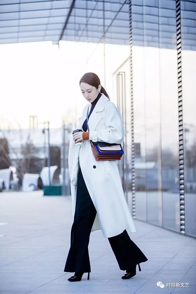 外穿一件白色长款大衣,一直盖到小腿,这件大衣的长度可不是一般人能hold得住的,身高低于170的穿上,恐怕都要拖地了吧!她穿出了一股180的既视感。