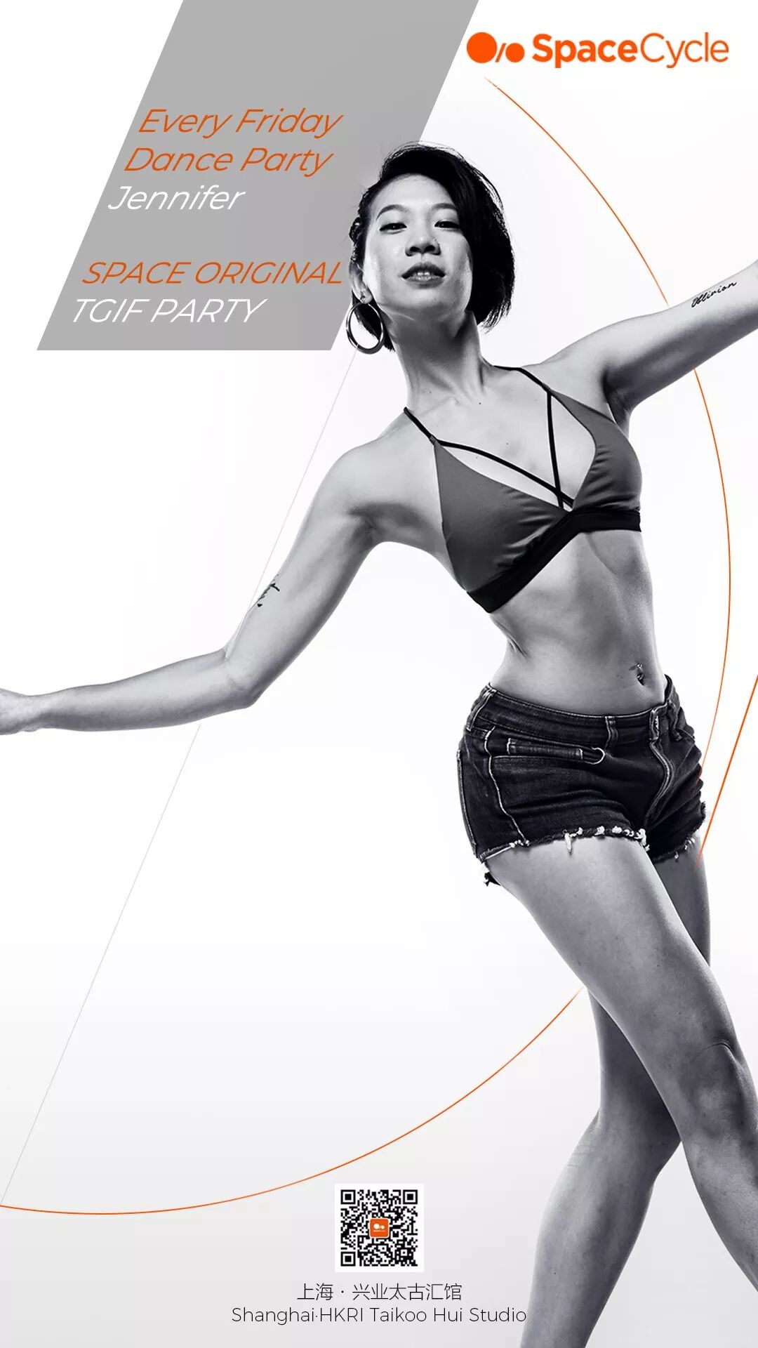 每周五夜晚,TGIF派对给你SPACE 独家的JenniFUN!来自毛里求斯,洋益热情的 Jennifer 老师将带领大家体验动感的非洲拉丁舞步。TGIF主题课不会停歇,每周五都有的dance party,没有任何舞蹈经验也能尽情享受、释放压力。所以要记得在周五前提前在APP上预约哦!