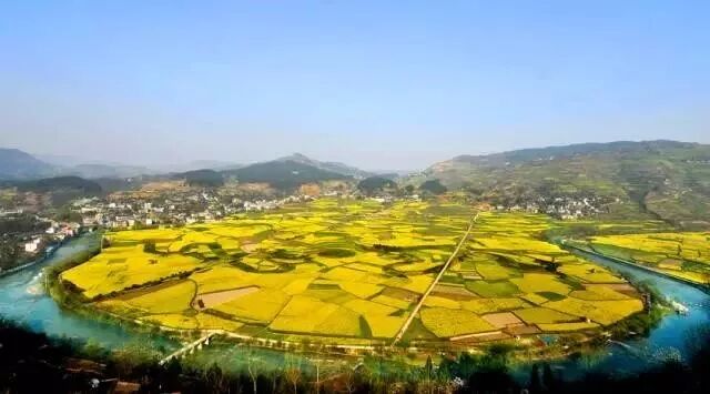开阳十里画廊的油菜花田,有着“中国油菜花第一弯”的称号。因为清澈的青龙河环绕着这一片“U”型的大拐弯,而美丽的油菜花就在这样的怀抱里自由地生长。