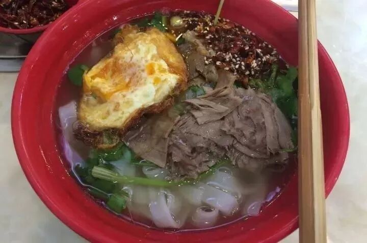 一碗好吃的羊肉粉需要新鲜羊肉配以爽滑的米粉和鲜羊肉汤~薄薄的羊肉片铺在米粉表面,米粉滑顺爽口,再搭配特制的小米辣,与米粉味道结合得相得益彰。