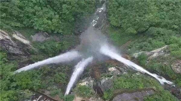 飞水岩瀑布的落差足有 148米,三条瀑布共宽 85米,比号称亚洲第一大瀑布的黄果树瀑布还要高出 47米、宽出 7.2米。