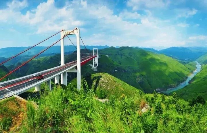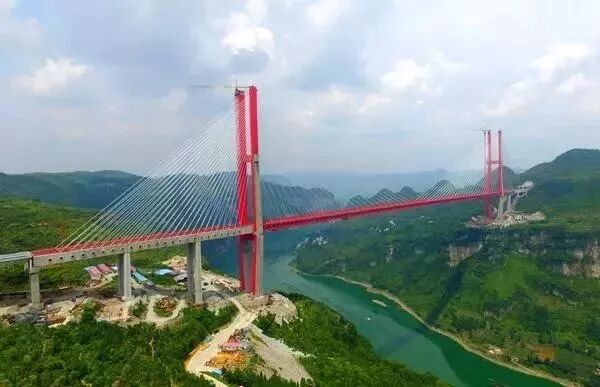 坝陵河大桥,是沪瑞国道主干线上跨越坝陵河大峡谷的第一座特大型桥梁,也是目前居"国内第一,世界第六"的大跨径钢桁梁悬索桥。