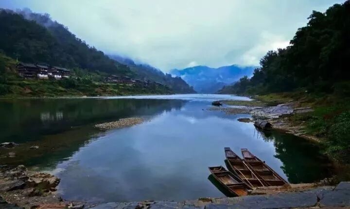 都柳江夹峙在雷公山与月亮山之间,因此,这里不仅重峦叠嶂、堆青拥翠,还有苗村、侗寨、水色隐藏其间。