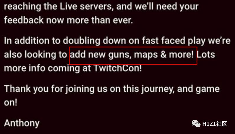其实在此之前的《H1Z1的未来》的文末,官方就提到了,“我们还想增加新的枪支、地图以及更多”
