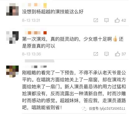 8月13日,杨超越新剧《羽你同行》开播,好评不断。“杨超越演技真的好自然,说她不适合演戏的该打脸了吧”!