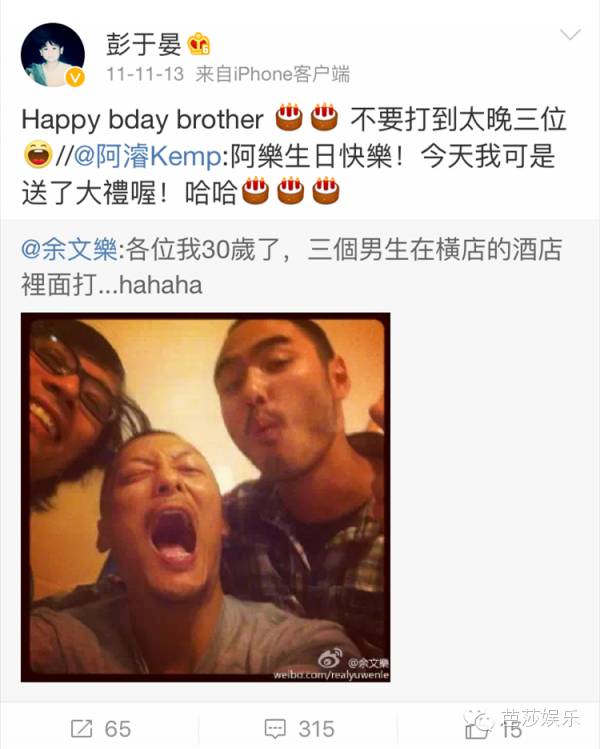 彭于晏开微博6年来,每一年都会给余文乐送上生日祝福,年年不落下。