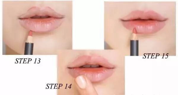 STEP15:基本整个再叠加一层唇线颜色做打底增加唇膏持久度