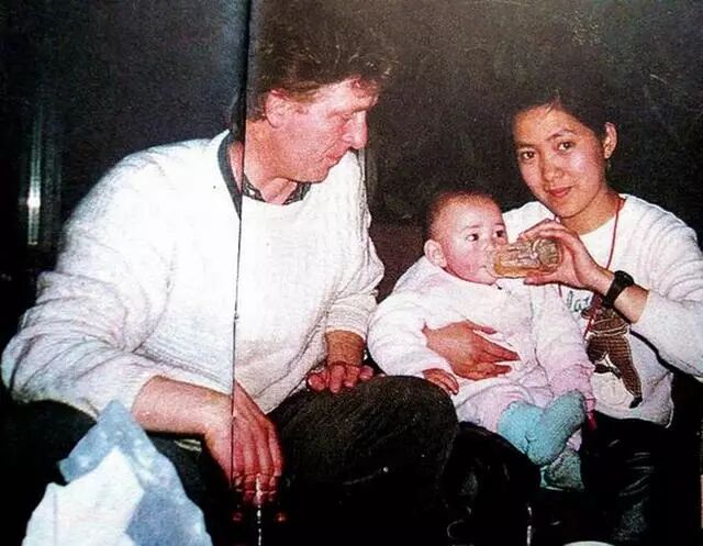 沈丹萍、乌韦·克劳特及大女儿刚出生时的一家三口幸福照。