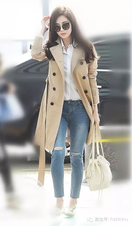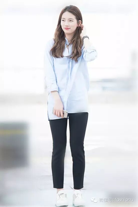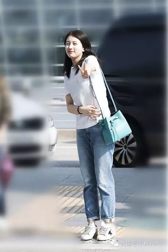 ►秀智妹子穿着boyfriend牛仔裤,搭配白球鞋有种潇洒的慵懒感。