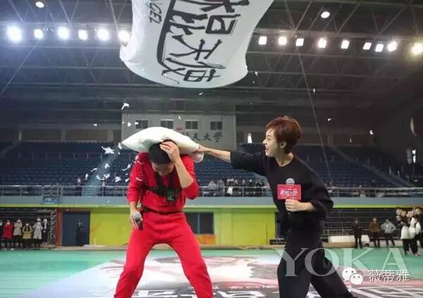 俩人还上演了一场激烈的枕头大战,棉絮满场飞,最终战绩当然是娘娘赢了,邓超被打到跪下!