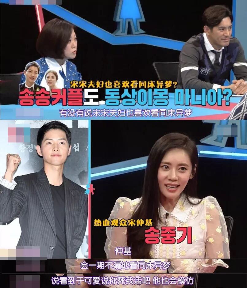 不仅如此,乔妹还向秋瓷炫透露,老公宋仲基是《同床异梦2》的忠实粉丝,每一集都会看。而且他还喜欢学于晓光的招牌流行语“你死我死”,看来宋男神也被于晓光的魅力捕获了。