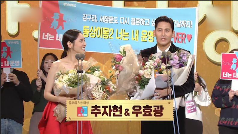 随着人气的飙升,夫妇俩甚至还在韩国年末的演艺大赏上获得了年度HOT STAR大奖,这也是对他们一年来演艺事业的肯定。
