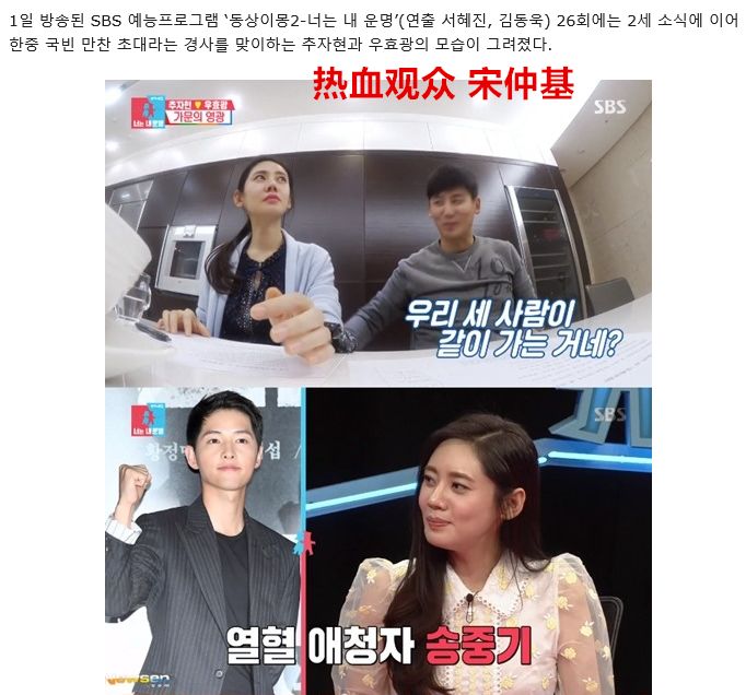 原来在本月的1日时,节目《同床异梦2》中播出了前段时间秋于夫妇与宋慧乔共同受邀到北京参加晚宴的画面。