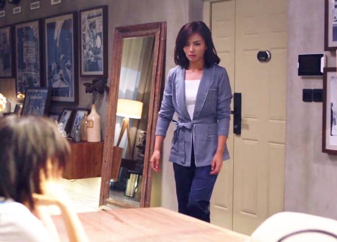这几集中最好看的大概是这件露肩蕾丝睡衣了。蒋欣的胖主要在胳膊,所以特别凸显胳膊的衣服都会显胖。而这种露肩款没有暴露胳膊上的肉,小露香肩最性感了。