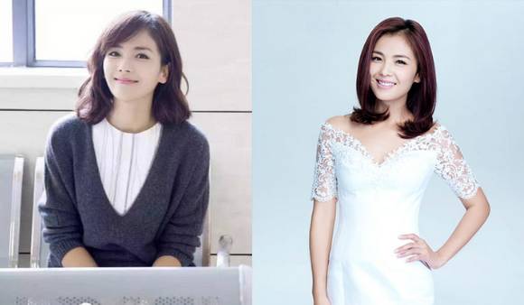 反例:这件半透明袖的衣服则明显显得蒋欣比刘涛大一圈。