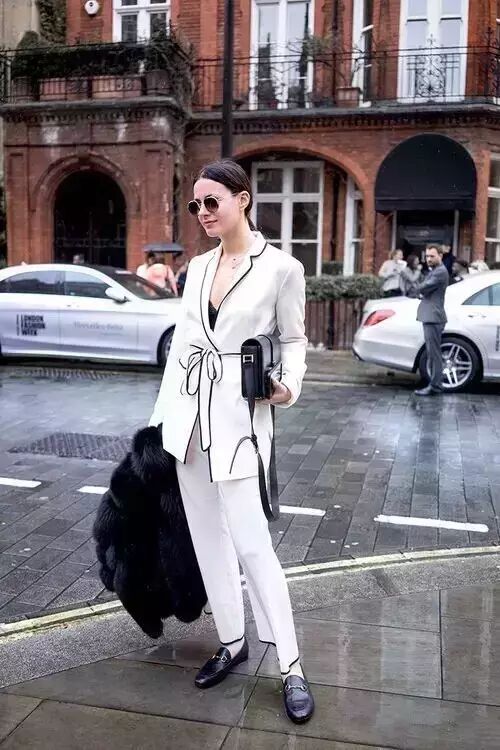 西装马甲,相比于西装更加休闲一些,也更时尚,内搭一件白衬衫就是非常Chic的OL LOOK。