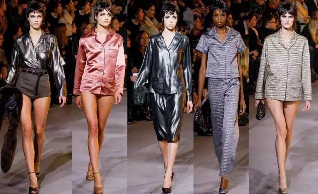 别看刘涛这件是居家服,其实穿出门完全没问题,好几家大牌从几年前开始就钟情于睡衣外穿了,纷纷设计了好多款。早在2013年的Louis Vuitton秀场,睡衣风就早已盛行。