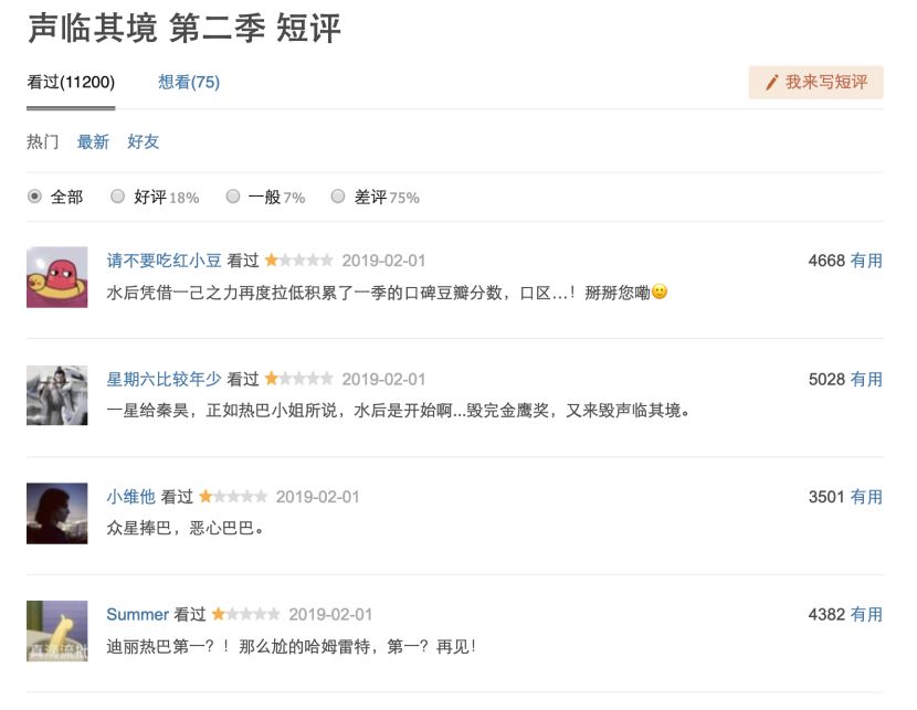 换做以前,即便有这样的怨气声,也没有太多管道可以发泄,现在借由互联网催生出的社交媒体,人们的一些不满便能够被传播和表达出来。既然没法参与到奖项和节目本身的评选中,那总可以在网上吐槽几句、在豆瓣上给出一星评价吧。