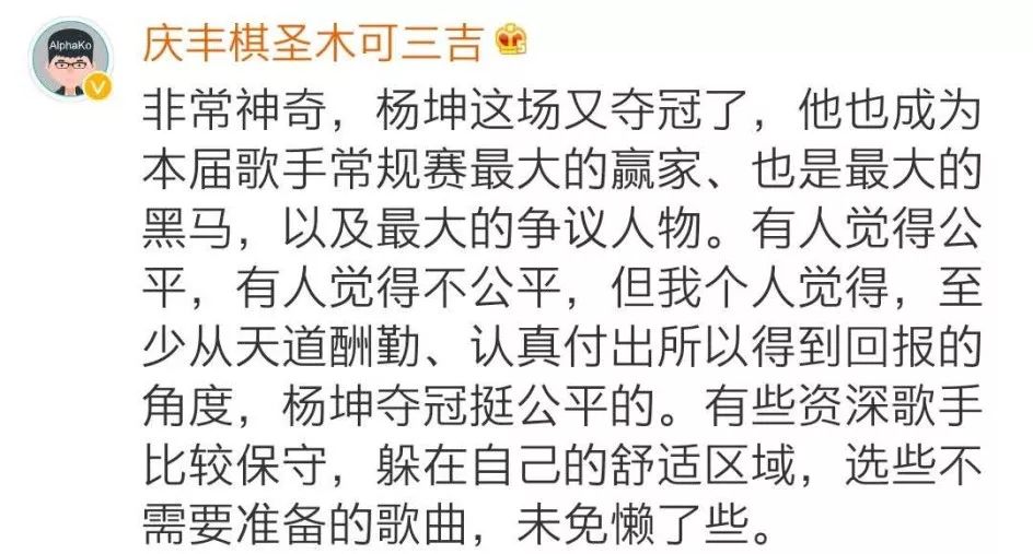 纵观往届节目,可以取得这样成绩的歌手并不多,可见杨坤的四次加冕,着实来之不易,含金量十足。