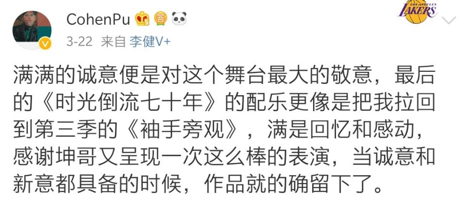 就像音乐博主CohenPu说的那样,满满的诚意就是对这个舞台最大的敬意。