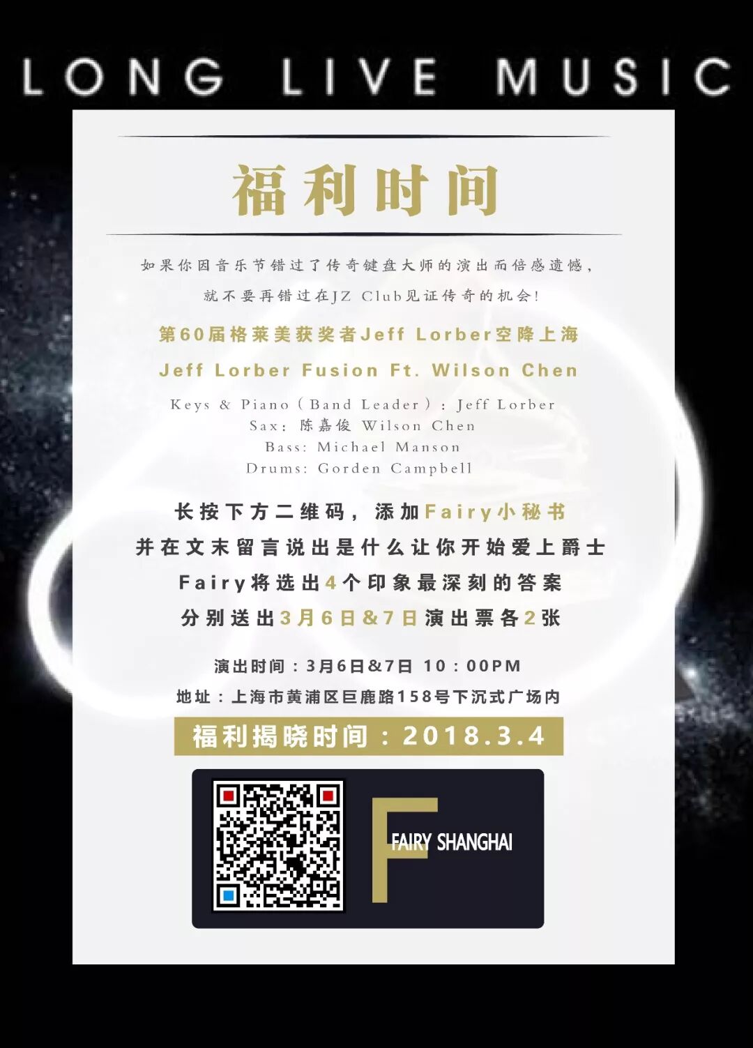 3月6日&7日,Jeff Lorber将带着他的Jeff Lorber Fusion来到JZ Club!