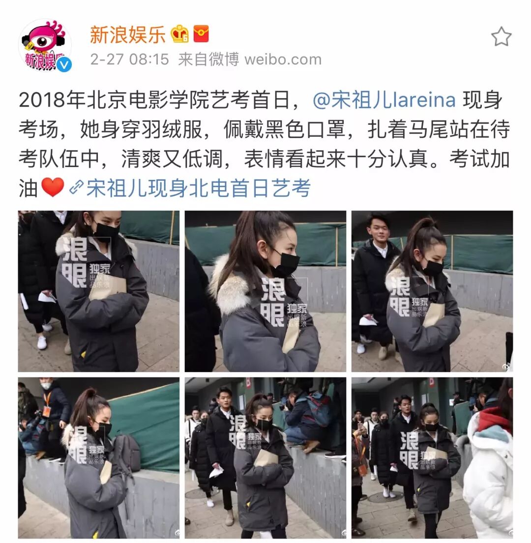 而之前各种在机场辛苦备战的宋祖儿,昨天也终于在北电艺考首日现身。考完之后她表示一同参加考试的同学都很厉害,自己考完整个人都是懵的。