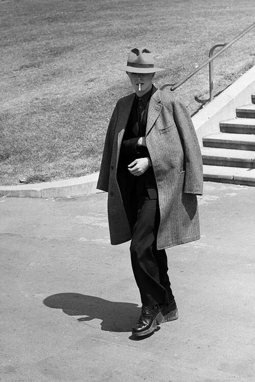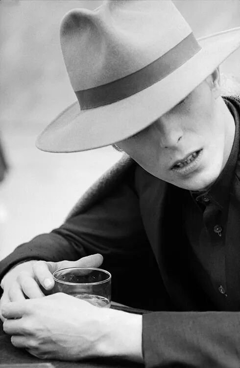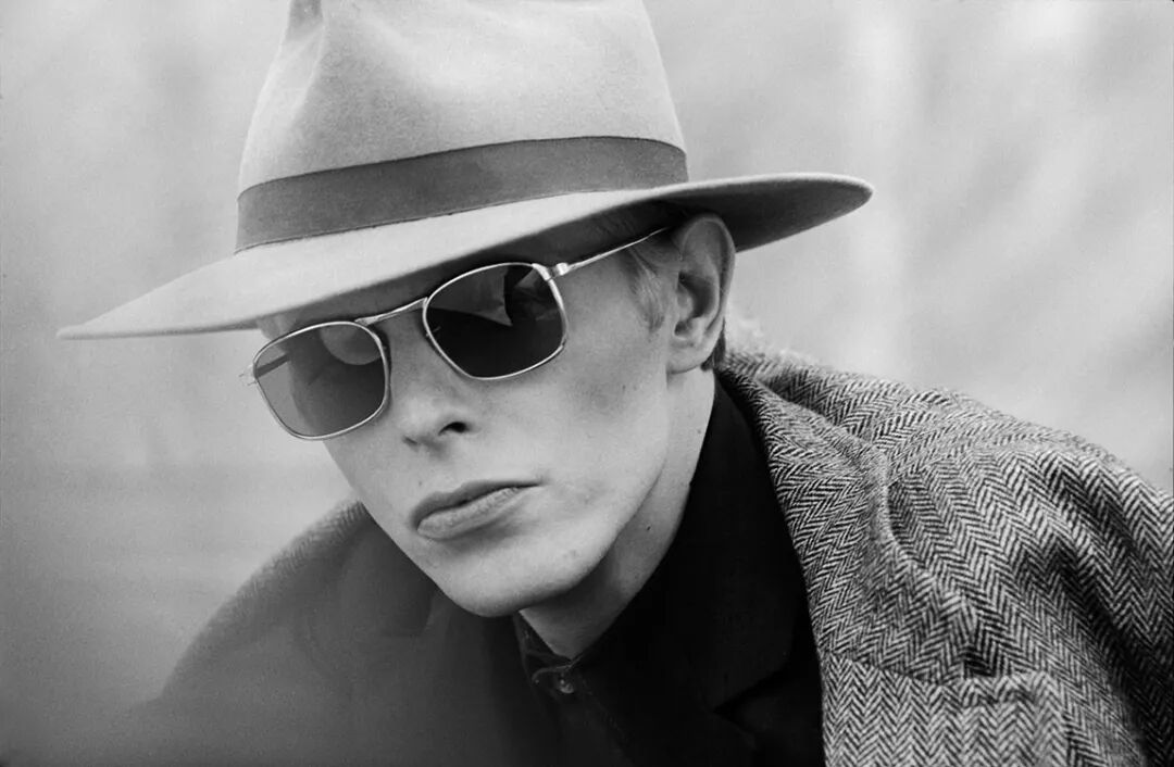 Singer David Bowie wearing a smart hat and sunglasses during the filming of ‘The Man Who Fell To Earth’ in Los Angeles, 1975.