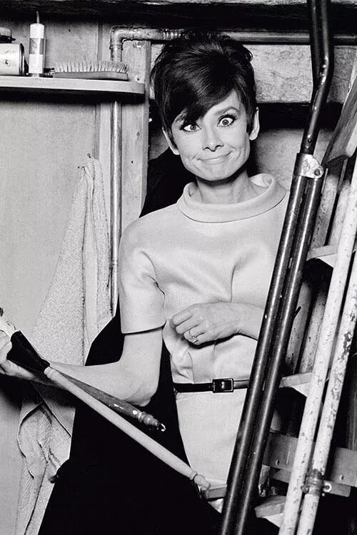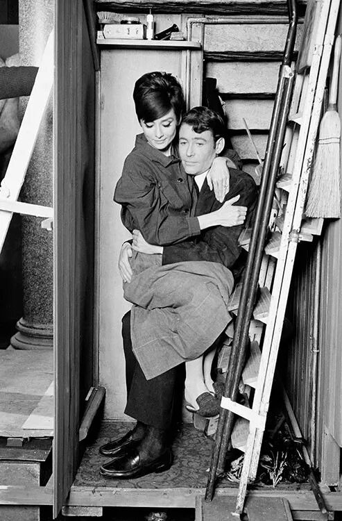 Actors Peter O’Toole and Audrey Hepburn (1929 – 1993) get uncomfortable together in a cramped broom cupboard in a scene from the crime caper ‘How to Steal a Million’, 1966.